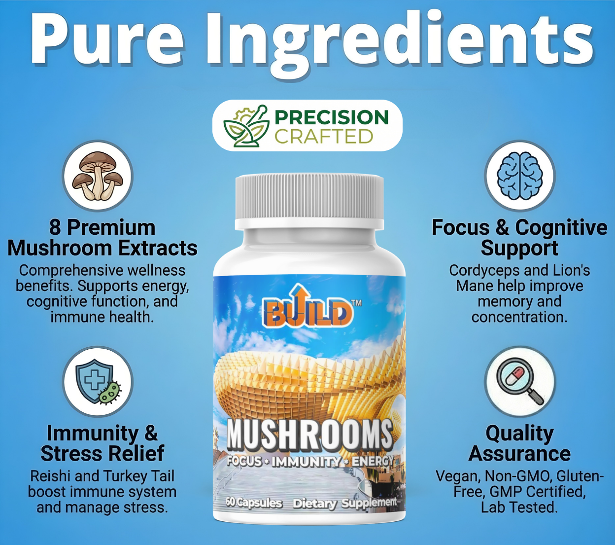 BUILD MUSHROOMS elevates your health with premium, science-backed ingredients.